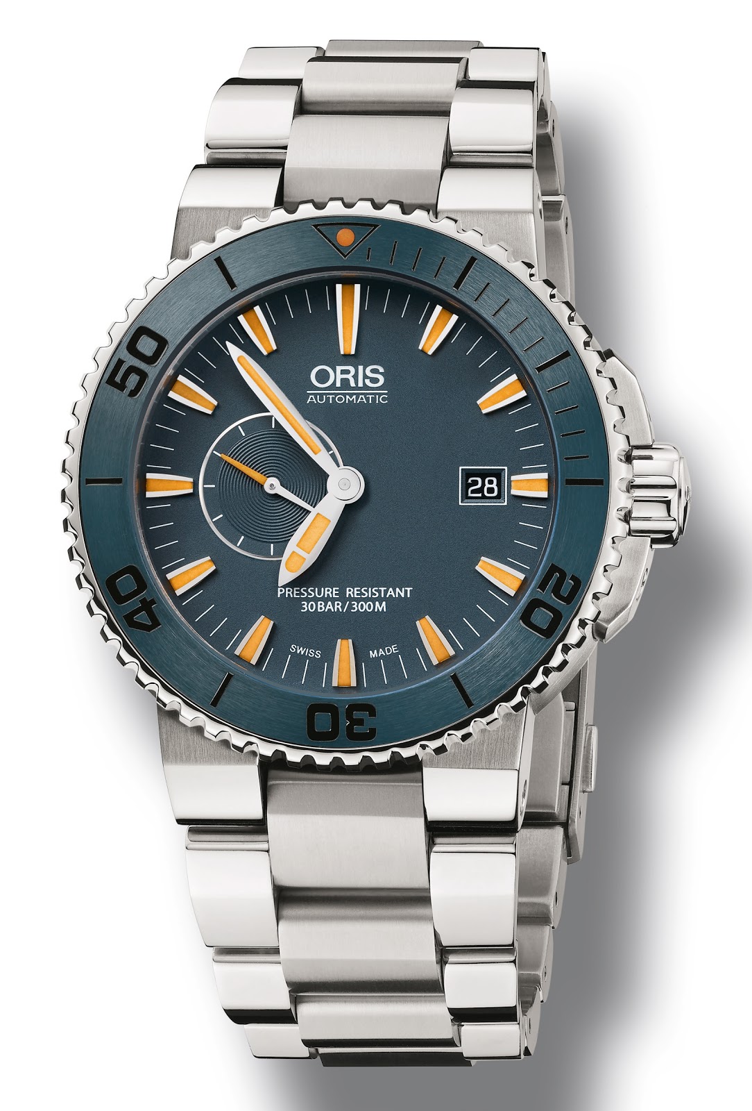 • Automatic mechanical movement Oris 643 with center hands for both hours and minutes, subsidiary second at 9h, date window